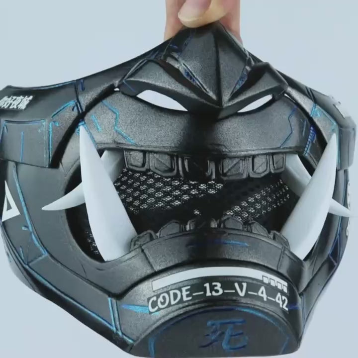 Ce masque Oni incarne la colère et la mystique du folklore japonais, revisité pour une nouvelle ère. Inspiré par des démons légendaires aux crocs acérés, ce masque fusionne le symbolisme Oni traditionnel avec une esthétique cybernétique futuriste.